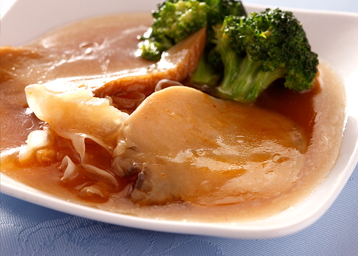 | アガリクス茸入りフカヒレ姿(200g) 特別大きなフカヒレ姿一枚を贅沢に使った一品。カルシウムとコラーゲンが豊富で、食べる美容液として潤いのある肌や髪へと導きます。 |